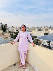 This classic short kameez paired with comfortable farshi shalwar strikes the perfect balance between tradition and contemporary style. Ideal for...